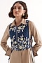 Featuring a khaki shirt in cotton satin base with contrast piping and stitch line details. It is paired with flared pants and a denim hand embroidered half-jacket. Accentuate with dangler earrings and heels for a complete look.