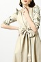 Featuring an oat dress in viscose suiting base with drape, an attached belt, puffed sleeves and side pockets.