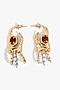 Featuring a pair of 22kt gold plated stud earrings studded with crimson crystals, moonstone, cubic zirconia and swarovski pearls, set in brass. Perfect for cocktail hours, parties, and glamorous nights out, this jewellery is a wardrobe must for those who love to shine effortlessly.