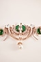 Featuring a 22kt rose gold plated belt studded with carves stones, natural pearls, crystal stones, cubic zirconia, baroque pearls and keshi pearls, set in brass. Perfect for festive occasions, weddings or sangeet ceremonies.