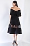 Featuring a black strapless midi dress in neoprene base with sheer organza panel detail. It is paired with an embellished wrap. Accentuate it with minimal jewellery and heels for evening wear or cocktail party.