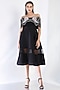 Featuring a black strapless midi dress in neoprene base with sheer organza panel detail. It is paired with an embroidered wrap. Accentuate it with minimal jewellery and heels for evening wear or cocktail party.