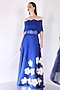 Featuring a royal blue maxi dress in neoprene base with 3D floral accents and mesh detailing. It is paired with a wave wrap. Accentuate it with statement earrings and heels for a cocktail soiree or an after party look.