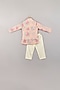 Baby Pink Silk Printed Kurta Set With Bundi Jacket For Boys