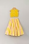 Featuring a butter yellow and blush pink leheriya lehenga in tissue and cotton base. It is paired with a contrasting dandelion yellow embroidered blouse.