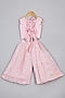 Featuring a candy pink top for girls in chanderi base with thread embroidery and knot tie-up detailing. It is paired with pants having an elasticated waist. Style it with jewellery and juttis for a festive occasion or sangeet ceremony.