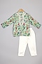 Green Chanderi Gota Embroidered & Floral Printed Kurta Set For Boys