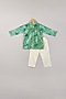 Featuring a green kurta in silk base with patola print and lace work. It is paired with contrasting off-white pajama pants.