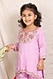 Featuring a lavender kurta for girls in silk base with zari and thread embroidery. It is paired with sharara pants having an elasticated waist. Accessorize it with matching hair accessories and sandals for a stylish ensemble, ideal for festive occasion.