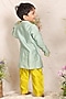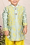 Featuring a mint kurta for boys in chanderi base with applique embroidery. It is paired with lime green pyjama pants having an elasticated waist. Style it with juttis and a watch for a festive occasion, mehendi or pooja ceremony.