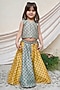 Featuring a mint and yellow kali lehenga for girls in chanderi base with floral print. It is paired with an embroidered blouse. Style it with cute hair accessories and sandals for a festive occasion or wedding ceremony.