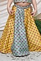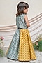 Mint & Yellow Chanderi Floral Printed Lehenga Set For Girls