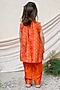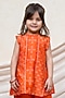 Featuring an orange kurta for girls in chanderi base with gota lace detail and print. It is paired with pants having an elasticated waist. Accessorize it with matching hair accessories and sandals for a stylish ensemble, ideal for festive occasion.