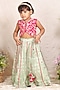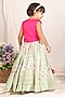 Featuring a pista green lehenga for girls in silk base with zari embroidery, elasticated waistband and adjustable drawstring. It is paired with a hot pink embroidered blouse. Accessorize it with matching hair accessories and sandals for a stylish ensemble, perfect for weddings or festive occasions.