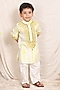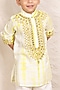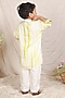 Featuring a white and lime green kurta for boys in silk and shibori base with a mandarin collar, shibori print and faux mirror embroidery. It is paired with pyjama pants having an elasticated waist. Style it with juttis and a watch for a festive occasion or pooja ceremony.