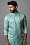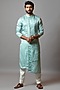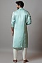 Featuring an aquamarine kurta in linen satin base with pintucks and overlapping asymmetrical panel. It is paired with contrasting cotton pyjama pants.