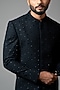 Featuring a black bandhgala jacket in suiting base with cutdana embroidery. It is paired with matching trousers.
