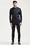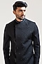 Featuring a black bandhgala jacket in terrycot base with cutdana embroidery and velvet detailing. It is paired with matching trousers.