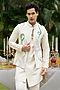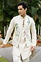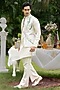 Featuring an ivory bundi jacket in chanderi base with hand-painted and embroidery. It is paired with a kurta and pants. Perfect for a festive occasion, wedding or engagement ceremony, exuding traditional charm and elegance.