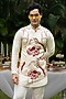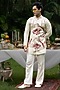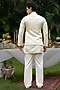 Featuring an ivory bundi jacket in linen satin base with hand embroidery. It is paired with a kurta and pants. Perfect for a festive occasion, wedding or engagement ceremony, exuding traditional charm and elegance.