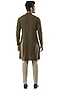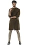 Featuring a khaki green kurta in cotton linen base with pintucks and flap pockets. It is paired with contrasting beige pajama pants having pintucks.