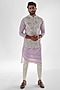 Featuring a light lavender nehru jacket in bamberg silk base with tissue applique work.