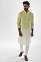 Featuring a lemon yellow and ivory shaded kurta in linen satin base with thread and cutdana work. It is paired with contrasting cream malai cotton pyjama pants.