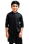 Black Suiting Texture Embroidered Nehru Jacket Set For Boys