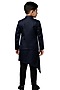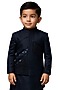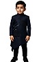 Ink Blue Linen Satin Embroidered Nehru Jacket Set For Boys