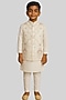 Ivory Linen Satin Floral Embroidered Nehru Jacket Set For Boys