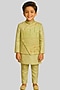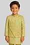 Lime Green Linen Satin Hand Embroidered Nehru Jacket Set For Boys