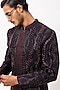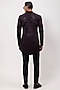 Featuring a plum indowestern jacket in linen satin base with sequins, cutdana, challa and abstract pintuck embroidery. It is paired with pants. Accentuate it with sleek black loafers or embroidered juttis and statement sunglasses for a sharp ensemble, ideal for cocktail evenings, sangeet nights or contemporary wedding receptions.