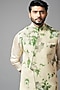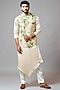 Featuring a white and green nehru jacket in kora base with tie-dye and piping detail. This contains only one piece.