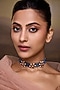 Featuring a gold finish choker necklace studded with floral motifs and turquoise stones, set in mixed metal. It has an adjustable dori closure. Perfect choice for festive celebrations or other Indian festivities.