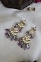Featuring a pair of gold finish handcrafted earrings studded with purple fluorite and mint natural stones, set in mixed metal.