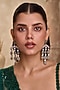 Featuring a pair of gold finish chandelier earrings studded with kundan polki and deep green jadau stones, set in alloy. Enhance your traditional charm with this elegant jewellery, perfect for weddings, festive occasions and family celebrations.