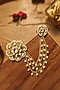 Featuring a gold finish adjustable ring studded with kundan polki and pearl chain, set in mixed metal. Perfect choice for festive celebrations, wedding or sangeet ceremonies.