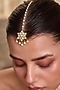 Featuring a gold finish maangtikka studded with kundan polki, pearl drops and fluorite stones, set in alloy. Enhance your traditional charm with this elegant jewellery, perfect for weddings, festive occasions and family celebrations.