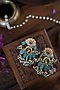 Featuring a pair of gold finish earrings studded with kundan, shell pearls, crescent motif and mint semi-precious stones, set in mixed metal.