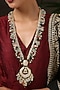 Featuring a gold finish handcrafted necklace studded with kundan, pearls, green onyx stones and tumble stones, set in mixed metal.
