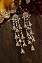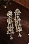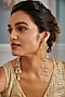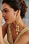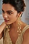 Featuring a pair of 22kt gold plated jhumka earrings studded with kundan polki, green hydro stones and pearls, set in mixed metal. It has a push back closure. Ideal for festive occasions or wedding celebrations.