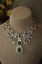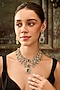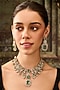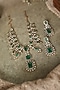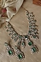 Featuring a 22kt gold plated necklace studded with green doublet stones, kundan polki and lobster closure, set in mixed metal. It is paired with a matching pair of earrings having a push-back closure. Perfect for weddings, festive celebrations and grand occasions.