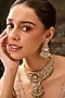 Featuring a 22kt gold plated necklace studded with kundan polki, mint onyx, pearls and adjustable dori closure, set in mixed metal. It is paired with a matching pair of earrings having a push-back closure. Perfect for weddings, festive celebrations and grand occasions.