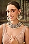 Featuring a 22kt gold plated necklace studded with kundan polki, multi-colored natural stones, pearls and adjustable dori closure, set in mixed metal. It is paired with a matching pair of earrings having a push-back closure. Perfect for weddings, festive celebrations and grand occasions.