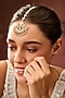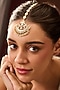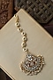 Featuring a 22kt gold plated maangtikka studded with kundan polki and pearls, set in mixed metal. It has a hook closure. Perfect for weddings, festive celebrations and grand occasions.