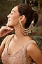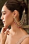 Featuring a pair of 22kt gold plated ear chains studded with kundan polki, green onyx, pearls and pink natural stones, set in mixed metal. It has a push-back closure. Perfect for weddings, festive celebrations and grand occasions.