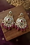 Featuring a pair of 22kt gold plated jadau dangler earrings studded with pearls and pink stones, set in mixed metal. It has a push back closure. Perfect choice for festive celebrations or other Indian festivities.