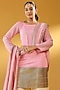 Featuring a pink kurta in pure soft chanderi base with gold gota embroidery. It is paired with off-white sharara pants and a pure chanderi dupatta. Accentuate it with dangler earrings and heels for a festive occasion or sangeet ceremony.