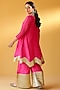 Featuring a rani pink kurta in pure soft chanderi base with gold gota embroidery. It is paired with sharara pants and a pure chanderi dupatta. Accentuate it with dangler earrings and heels for a festive occasion or pooja ceremony.