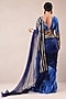 Featuring an atlantic blue pre-pleated ruffled saree in chiffon base with an attached underskirt and lehar print. It is paired with a chanderi backless blouse having tie-up detail. Accentuate it with statement jewellery, embellished wedges, and a potli bag for a complete look, Perfect wear for a cocktail, engagement or wedding ceremony.